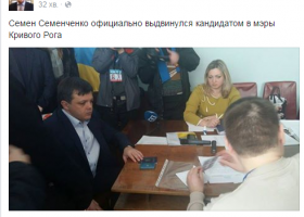 Депутат от "Самопомочи" Семен Семенченко официально выдвинул свою кандидатуру на пост мэра Кривого Рога.