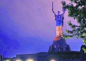 Під час св'яткування Дня Конституції найбільший пам'ятник столиці підсвітили синьо-жовтим кольорами та написали 20-ма мовами "Я - патріот". Шоу створили активісти арт-об'єднання "Художня платформа"