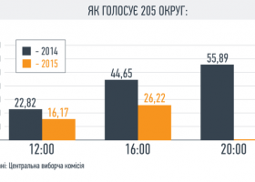 По состоянию на 16:00 на промежуточных выборах народного депутата, проходящих в воскресенье в 205-м округе (Чернигов), проголосовали 26,22% избирателей,