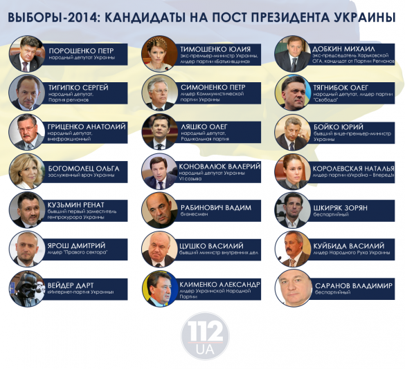 Во втором эшелоне - россыпь кандидатов, некоторые из них - весьма достойны, другие имеют двадцатилетний опыт участия в президентских кампаниях. Среди таковых – нардеп, лидер "Радикальной партии" Олег Ляшко, лидер "Правого сектора" Дмитрий Ярош, лидер ВО "Свобода" нардеп Олег Тягнибок, экс-губернатор Харьковщины Михаил Добкин (и масса других кандидатов от Партии регионов, среди которых наивысшие рейтинги имеет экс-минсоцполитики Сергей Тигипко), известный врач и член совета Евромайдана Ольга Богомолец, лидер КПУ Петр Симоненко, и экс-министр обороны Анатолий Гриценко. Самые высокие рейтинги из всех этих кандидатов имеют Тягнибок, Тигипко, Добкин, и конечно же, лидер КПУ, который на протяжении 20 лет сохраняет свой электорат.