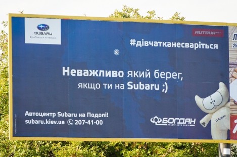 Позже к «общению» дилеров Nissan и Hyundai подключилась Subaru, разместив билборд #девочкинессорьтесь.