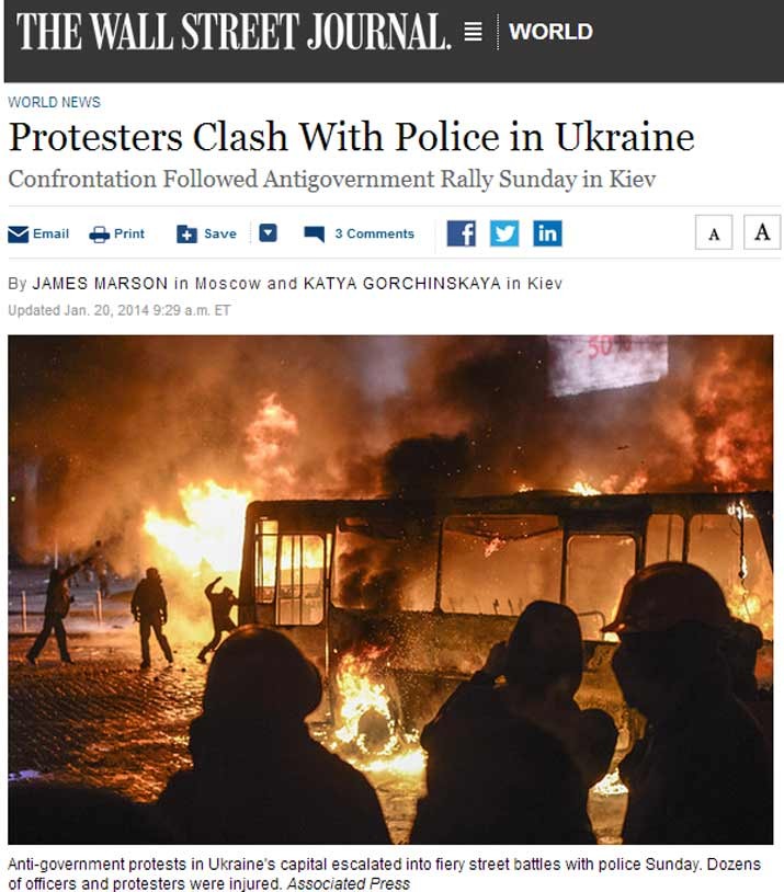 Протестующие вступили в схватку с полицией в Украине, «Wall street journal»