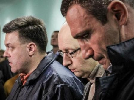 Разочарование, вызванное плохими новостями, должно было на ком-то выплеснуться — например, на тройке лидеров оппозиции, которые взяли на себя функцию и лидеров Майдана. Фигуры Арсения Яценюка, Виталия Кличко и Олега Тягнибока словно съежились, зато выросли сомнения в том, что у них есть какая-то цель и разумный план действий на ближайшие дни.