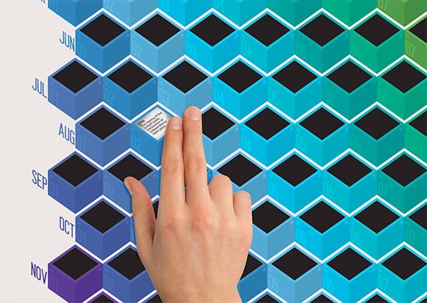 Компания Brigada Creativa предлагает клиентам обращать внимание не на даты в календаре, а на настроение, которое сопутствует в течение дня. Отмечать преобладающие эмоции можно прямо на календаре при помощи привычных смайликов. Внешне Life Calendar напоминает детскую игру "Твистер", где месяцы отделены друг от друга смайликами голубого цвета.