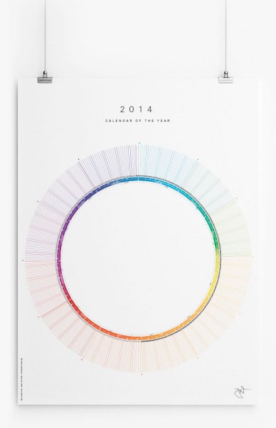Прототипом создания оригинального кругового календаря послужил обычный циферблат часов. Дизайнер Jonas Wyssen задумался: "если сутки умещаются в одном круге с делениямт, то наверняка можно уместить в него и целый год". В результате родилась модель, в котором каждый день отделен чертой, каждый месяц выделен определенным цветом, соответствующим ожидаемому температурному режиму, а дополнительные поля позволяют делать заметки о каждой конкретной дате.