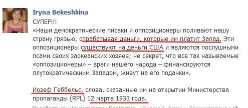 Ирина Бекешкина, директор фонда "Демоккратические инициативы" затроллила грантоедов. Социлолог процитировала в соцсетях Геббельса, чем вызвала негодование "Украинской правды".