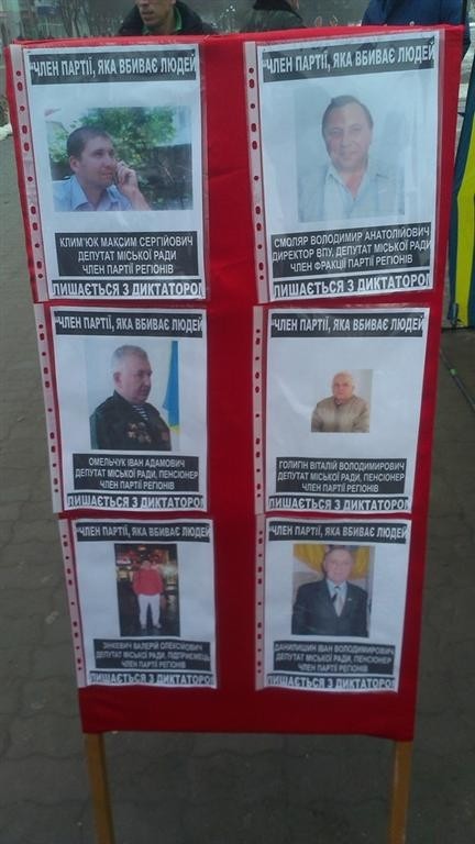 Решение о создании доски позора было принято на одном из воскресных собраний, "поскольку жители города хотели знать в лицо каждого депутата, который является членом Партии регионов и не вышел из нее", отмечают свободовцы.