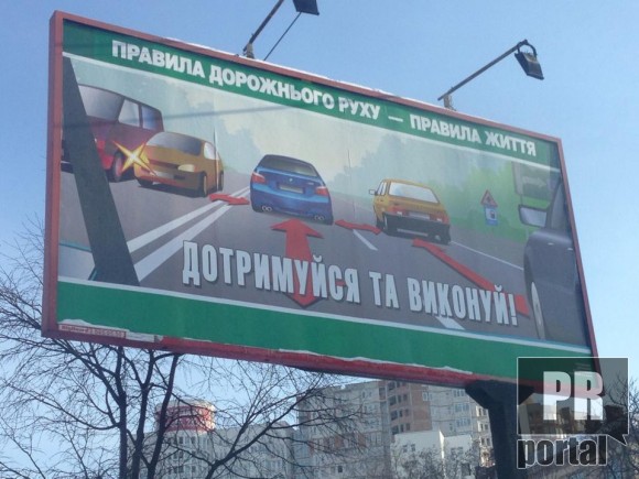 В Киеве появились унылые социальные билборды ГАИ, призывающие соблюдать правила дорожного движения.