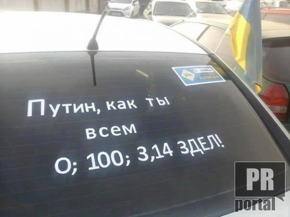 Украинские автовладельцы размещают на авто ребусы с посланием Путину.