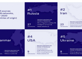 Facebook назвав Росію, Іран, М'янму, США і Україну ініціаторами більшості операцій з дезінформації як всередині країни, так і за кордоном, повідомляє The Washington Post та Voice of America з посиланням на звіт Facebook за 4 роки, у якому розглядається так звана скоординована неавтентична поведін