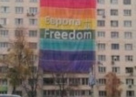 В понедельник неизвестными были вывешены на проспекте Победы два огромных радужных плаката.