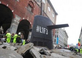 В центре Милана из-под земли, проломив асфальт, всплыла огромная подводная лодка c российскими матросами на борту.