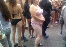 В Киеве в торговом центре "Квадрат" на бульваре Перова в субботу прошла скандальная акция "Пришла раздетой - ушла одетой", участникам которой было предложено раздеться до нижнего белья, а взамен получить одежду бесплатно.