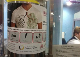 Фонд самого богатого человека Украины Рината Ахметова "Розвиток України" разместил рекламу на железнодорожнем вокзале.