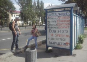 Как ранее сообщал "Донбасс", в Донецке на троллейбусной остановке на Киевском проспекте появилась нарисованная от руки "социальная реклама", в которой родителей призывают радоваться без алкоголя.