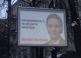 "Справедливість є, за неї варто боротися" - решила не долго думать Наталия Окунская и позаимствовала для своих предвыборных билбордов лозунги экс-шефини экс-мужа.