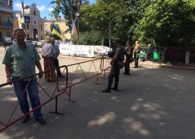 Надежда Курамшина, которая встречалась с главарем ДНР Александром Захарченком, пикетирует Администрацию Президента со стороны улицы Лютеранская