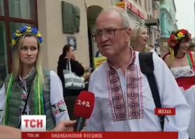 Близько двох десятків москвичів в українському національному вбранні пройшлися тамтешньою вулицею Старий Арбат з музикою і танцями