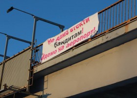 На Бориспольской трассе пявились баннеры, призывющие "идти на аэропорт". На плакатах, исполненных в традиционной "тимошенковской" гамме, также отмечается, что "крысы не сбегут через Борисполь".