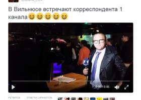 Граждане Литвы встретили журналистов прокремлевского "Первого Балтийского Канала" известной нецензурной песней про президента России Владимира Путина.