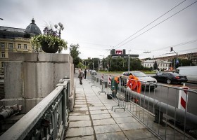 В понедельник утром на Зеленом мосту в Вильнюсе уже не было скульптур рабочих и военных. Вместо них на постаментах появились цветы в больших вазонах.