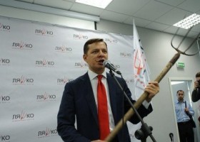В Орджоникидзе Днепропетровской области избиратели встретили кандидата в народные депутаты Радикальной партии Олега Ляшко с матерными плакатами и петухами.