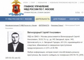 С сайта управления МВД по Москве пропала информация о том, что заместитель министра обороны самопровозглашенной Донецкой народной республики Сергей Великородный разыскивается за мошенничество.