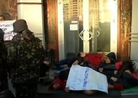 Под Администрацией Президента состоялся немногочилсенный митинг. Участники требовали от Порошенко остановить "прилуцкую мафию" и отставить местного мера "свободовца" Дмитрия Барнаша.