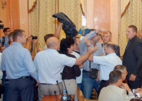 В Одесі в сесійній залі міської ради стався конфлікт з участю активістів через невнесення до порядку денного питання про визнання Росії країною-агресором.