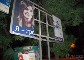 В Одессе уничтожена разрекламированная скандальной активисткой Алёной Балабой социальная реклама, призывающая доносить на так называемых «бытовых сепаратистов».