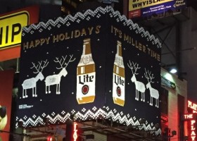 Пиво Miller Lite поздравило жителей Нью-Йорка с приближающимся Рождеством связанным вручную постером.