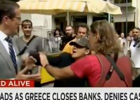 Неизвестная женщина прервала прямой эфир журналиста CNN Ричарда Квеста из Греции.