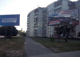 Вчора, 24 вересня, у місті Шостка (Сумська область) з’явилися білборди із символікою партії «Блок Петра Порошенка «Солідарність» на фоні фотографії відомого в місті храму та гаслом «Волю Гамаліївському монастирю!».