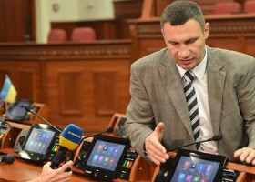 Мэр Киева Виталий Кличко презентовал первую в Украине новую современную систему голосования "Рада-4", которую установили в сессионном зале Киевского городского совета.