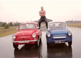 Белорус спародировал эпический трюк Ван Дамма и сел на шпагат между "Запорожцами"