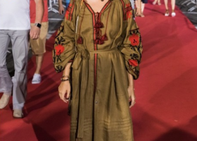 Российская телеведущая ижурналист Ксения Собчак на красной дорожке кинофестиваля "Тавр" в Сочи появилась в вышиванке.