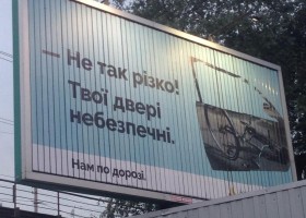 В Киеве появилась социльная реклама, призывающая "следить за дверью". Билборды напоминают автоводителям, что их двери небезопасны для велосипедистов.