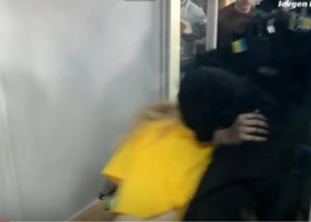 Учора під час розгляду в Солом'янському районному суді Києва справи підозрюваної в розстрілі міліцейського патруля Віти Заверухи в будівлю суду увірвалися близько тридцяти невідомих, які спробували заблокувати суддів.