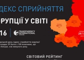 Міжнародний рух Transparency International опублікував своє головне щорічне дослідження "Індекс сприйняття корупції" (ІСК), в якому за підсумками 2016 року Україна посіла 131 місце із 176 країн.