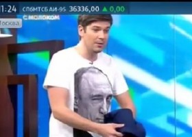 Президент России не сходит не только с первых полос СМИ. Украинские парламентарии продолжают "троллить" российского президента. Народный депутат Олег Медуница пришел в Верховную Раду в футболке с надписью "F##K" и изображением Путина.