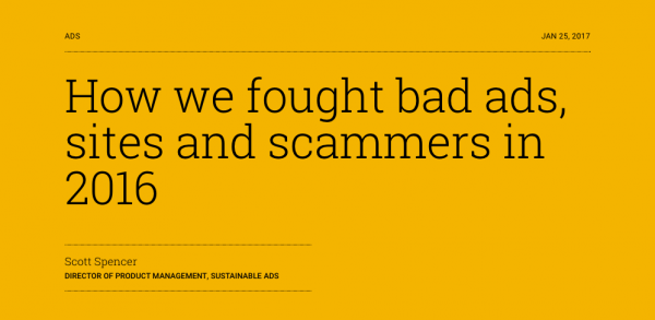 При цьому в 2015 році в рамках боротьби з «поганою рекламою» Google видалила 780 мільйонів рекламних публікацій.