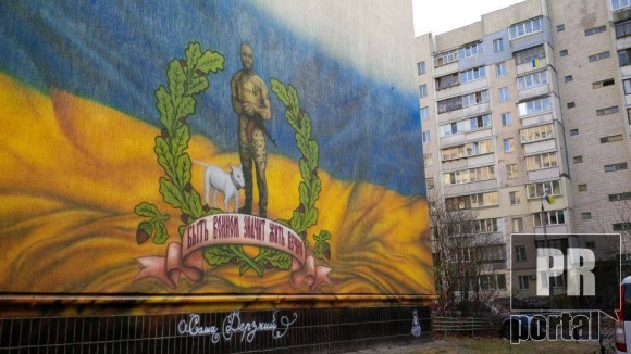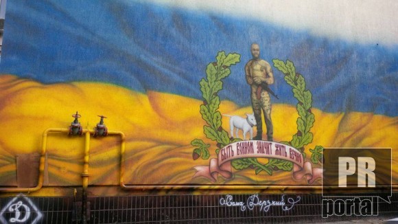 Александру “Дерзкому” Русаку - активисту и фанату “Днепра”, погибшему во время боевых действий в составе добровольческого батальона “Азов”, посвятили граффити на одном из домов в Киеве.