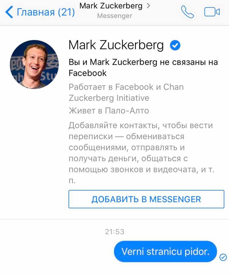 Понятно, что неценезурное сообщения от "Букв" Цукерберг, конешно, не читал