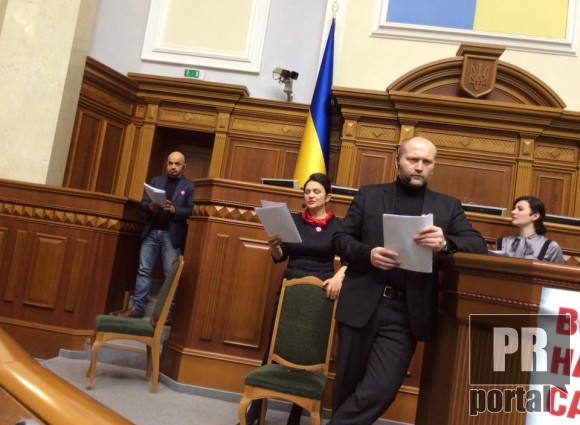 У залі Верховної Ради народні депутати поставили п'єсу "Сім". Це відбулося у перерві засідання. В такий спосіб політики виступали проти насильства у сім'ї.