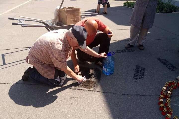 Двірників примусили витирати надписи біля МВС «Хто вбив Павла?»
