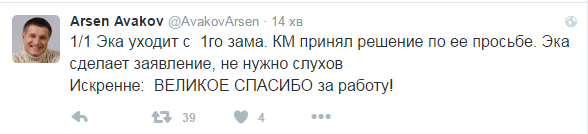 Пізніше Аваков додав, що Ека прийняла його пропозицію і продовжить роботу в команді реформ МВС, очоливши спеціальну групу радників