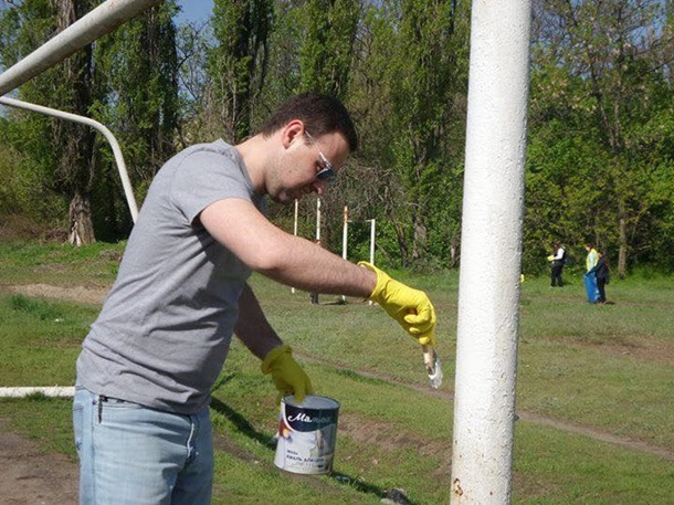 "Нынче среди чиновников и депутатов стало модным пиариться на субботниках. Решили не отставать. Вместе с секретарем горсовета покрасили футбольные ворота. Я левую штангу, он – правую", – написал Филатов.