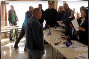 На відео, опублікованому в Мережі, видно, як мер міста Конотоп роздратовано поскидав прапорці зі столів людей, які були на засіданні. Також він гучно кричав "геть сепаратистів" та "у моєму місті сепаратистського шабашу не буде".