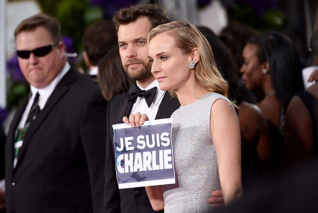 Голливудские звезды пришли на церемонию вручения премии «Золотой глобус», которая проходит в эти минуты в Лос-Анджелесе, держа в руках плакаты с надписью «Я — Шарли» в знак поддержки журнала Charlie Hebdo и родственников жертв терактов во Франции. Об этом сообщает Reuters.