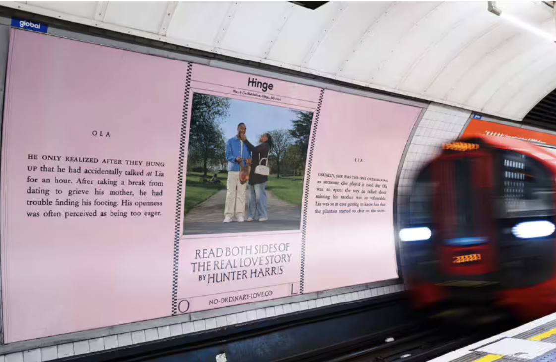 Застосунок для знайомств Hinge досліджує емоційні повороти сюжету ранніх знайомств у рамках літературної кампанії. У ній п’ять сучасних письменників переказують реальні історії кохання пар з Hinge.